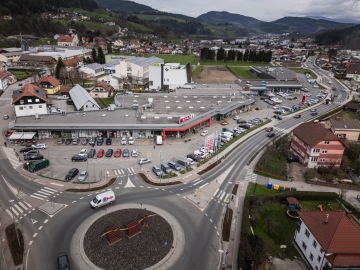 The newest park is located in Slovenj Gradec—it was opened this year. The shopping center's customers include not only the residents of the town, which has a population of more than seven thousand, but also people from its surroundings. The retail park is situated next to a major road crossing the north of the country. Slovenj Gradec retail park spans almost 4,928 square meters and hosts SPAR groceries, Müller drugstore, Hervis sports goods, and Slovenian electronics retailer Big Bang.