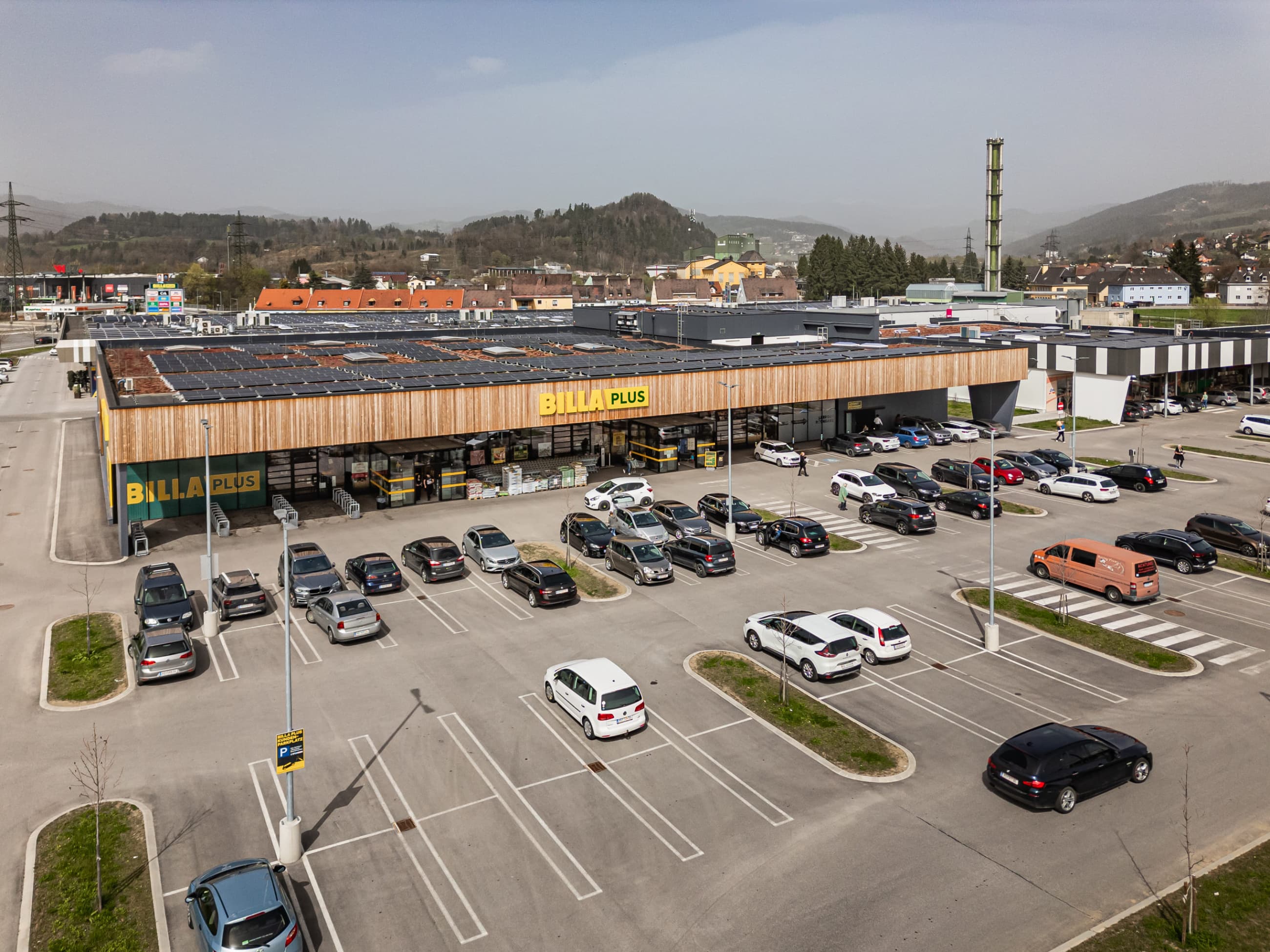 The VORUM Voitsberg project was built on the site of a former brown coal power plant that once separated the towns of Voitsberg and Bärnbach. The acquisition took place in three stages starting in 2021. Today, it consists of three buildings with a total leasable area of 13,096 m², which have become the town’s central shopping zone. The rooftops of the VORUM Voitsberg retail park are equipped with photovoltaic panels that significantly reduce its carbon footprint. The retail park also includes a modern BILLA Plus store with special glazing that reduces cooling energy consumption by up to 60%. Sustainability is further supported by the parking area, which offers several charging stations for electric vehicles.